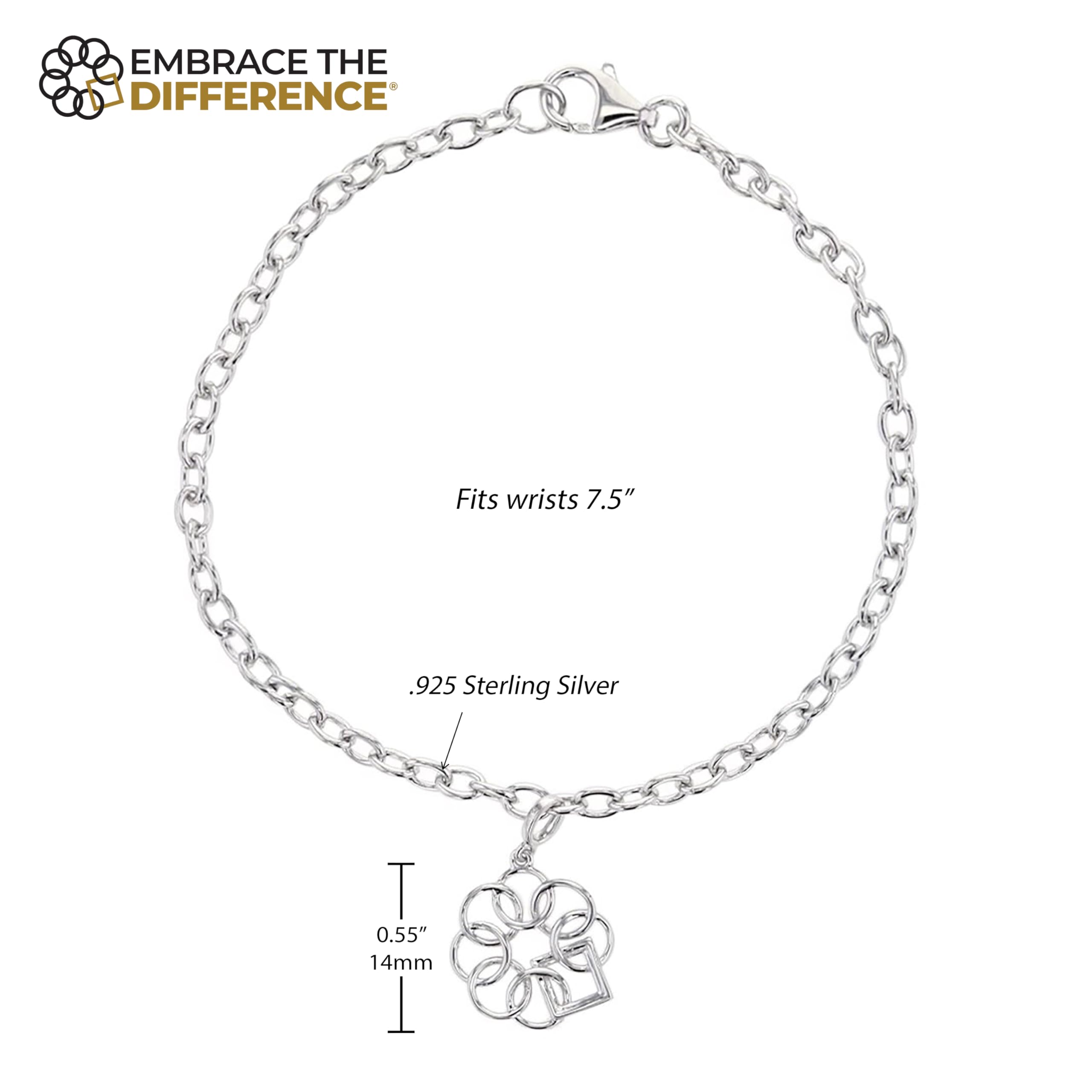 • The bracelet is  made from rhodium plated .925 Sterling Silver and measures 7.5″. The  Embrace the Difference® open charm  is 14mm.