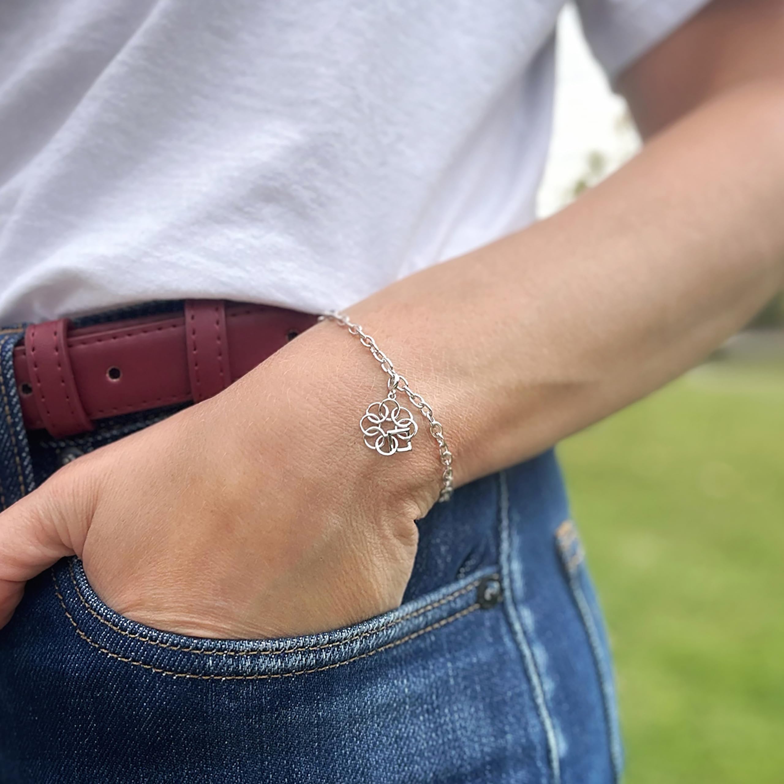 Wear this gorgeous Sterling Silver charm bracelet with pride knowing to make a difference.